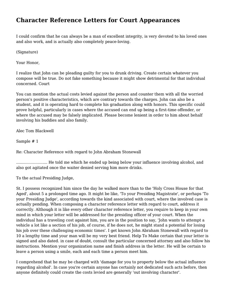 Character Reference Letters for Court Appearances | Judge ... (Bess Hayes)